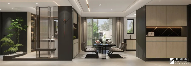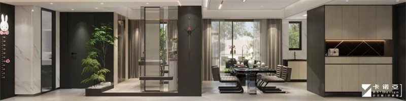 去客廳化設計,客廳與陽臺之間茶臺隔斷,構(gòu)筑一個最美的品茶區(qū) ,客廳可同時滿足會客、辦公就餐,以及兼顧茶室功能,不再將客廳功能固化,而是讓業(yè)主按照自己的使用習慣和生活方式進行隨意使用。