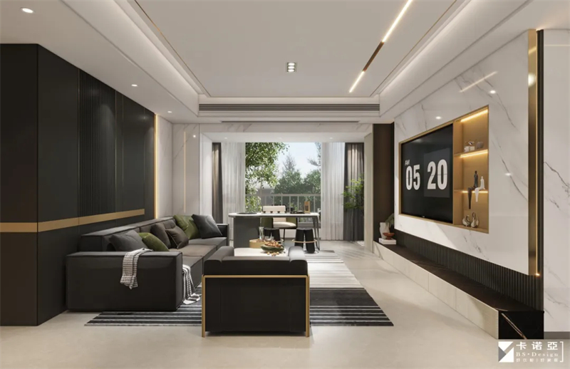 客廳設計拒絕傳統(tǒng)單一,采用懸浮柜+半開放柜組合的方式,構(gòu)建客廳收納美學。半開放柜可陳列雜志書籍,可展示心愛手辦、潮玩,賦予空間N+1的功能,每一處細節(jié)都精致熨帖。