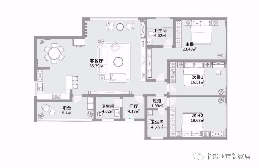 衣柜、護墻板、地板都采用統(tǒng)一的素色