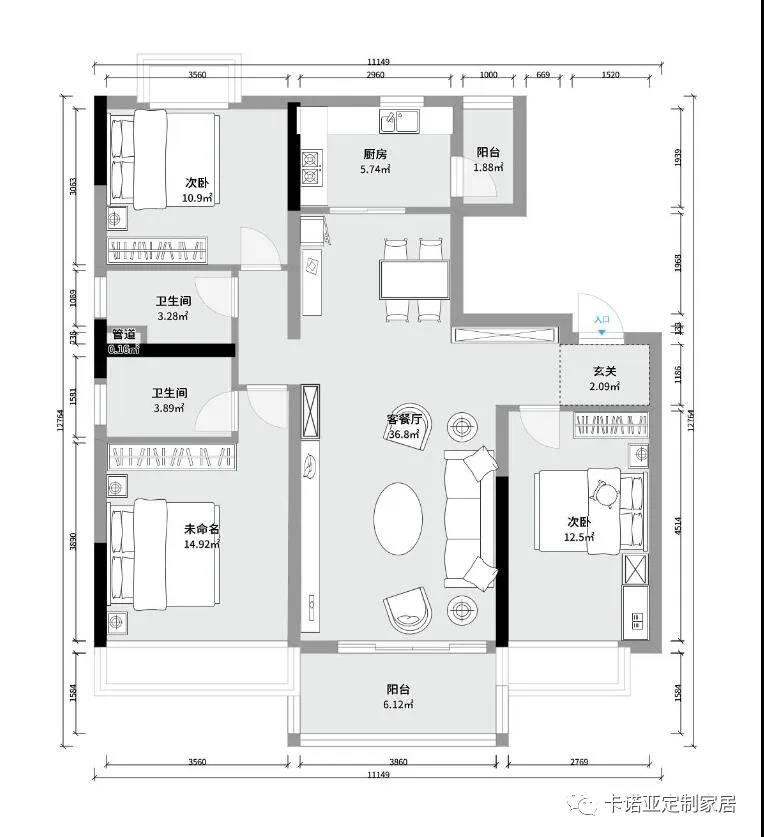 清洗區(qū)和烹飪區(qū)分別位于轉角兩側