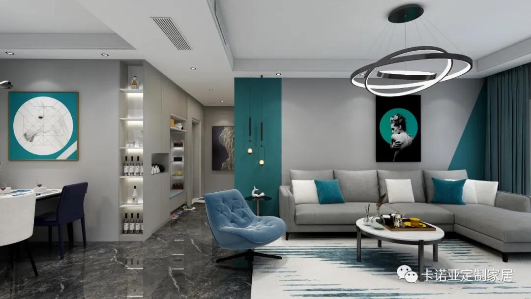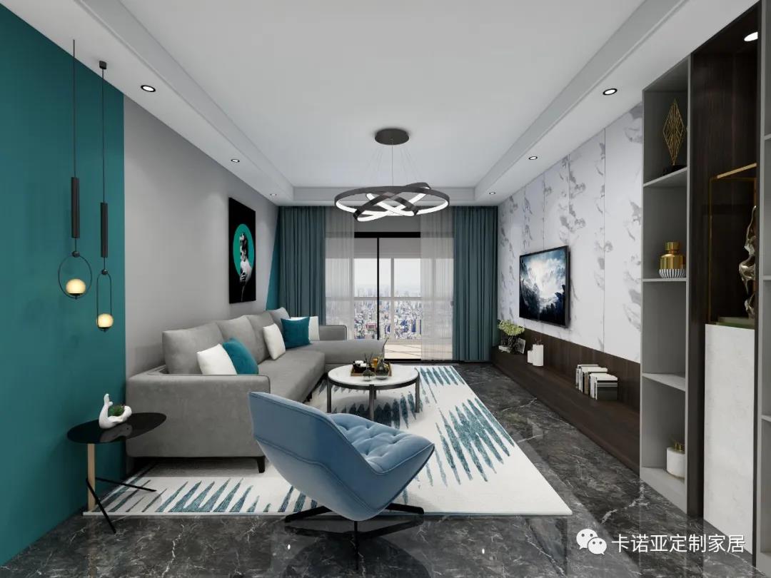 客廳空間點綴藍與白