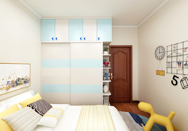 ▲小朋友的房間比較明亮,童趣十足,水天藍和公主粉的設計再搭配明亮黃,瞬間輕快明亮,功課區(qū)和休閑區(qū)的設計,書桌功課做完立馬可以在休閑區(qū)玩耍,一房多用,小朋友們表示很喜歡自己的房間。