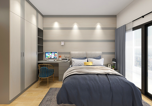 榻榻米+書(shū)桌+儲(chǔ)物柜+衣柜,平常可以做作業(yè)、看書(shū),多功能室完成,既是書(shū)房也是臥房,儲(chǔ)物能力MAX。