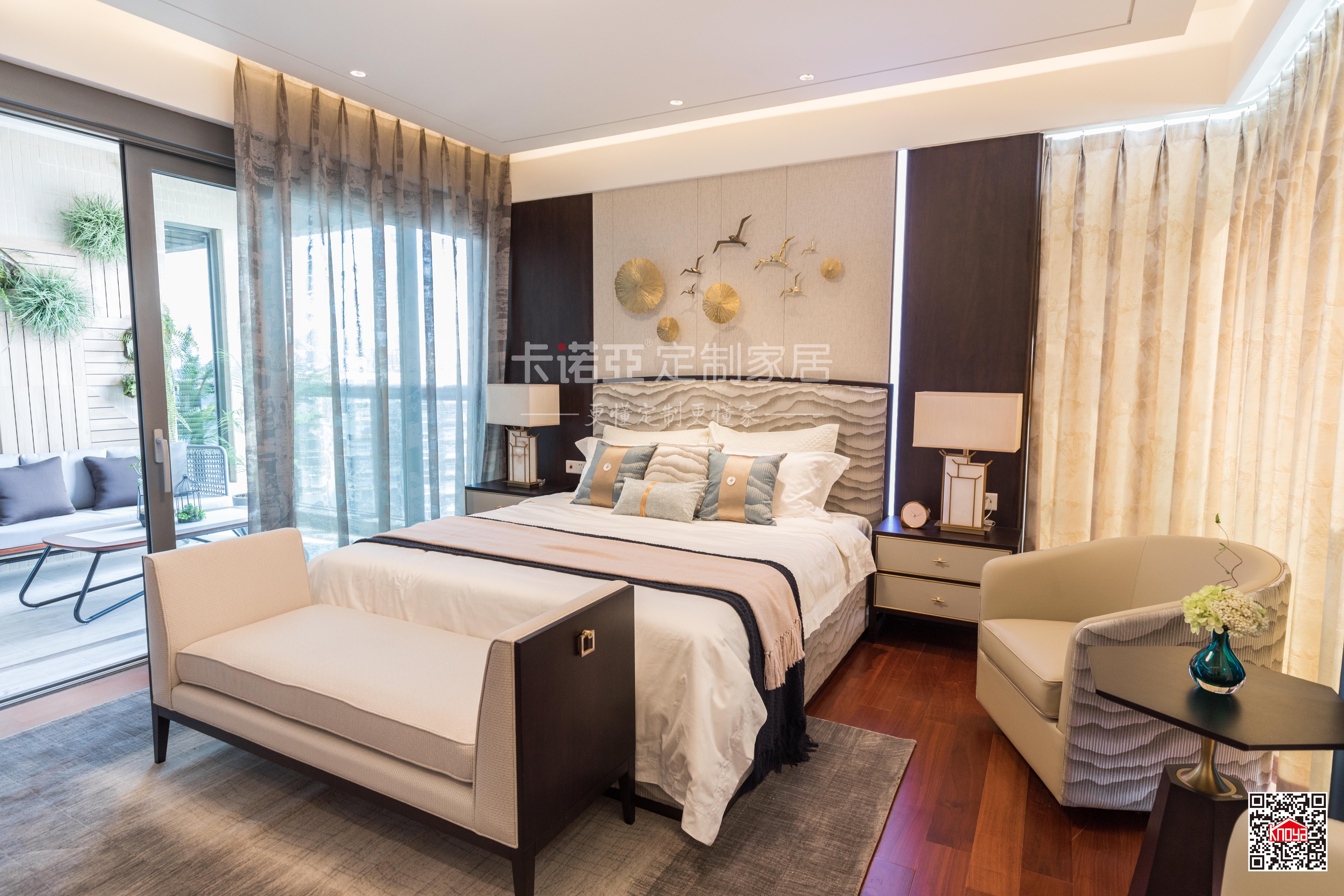 雖然主調(diào)是簡(jiǎn)約風(fēng),但是臥房整體自帶奢華感。