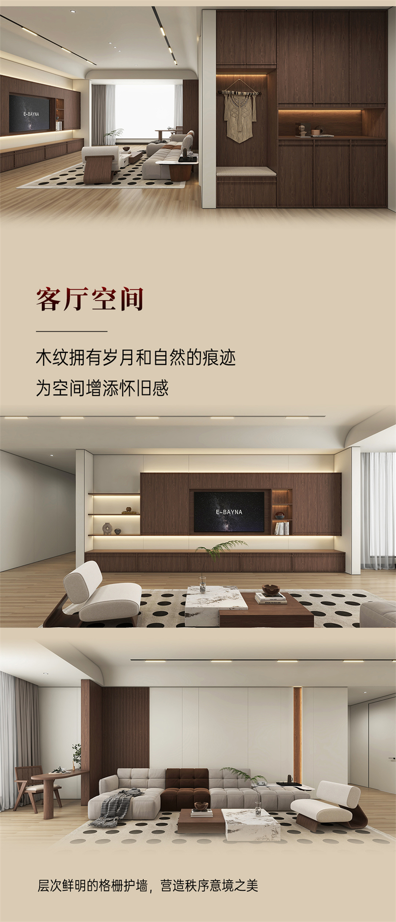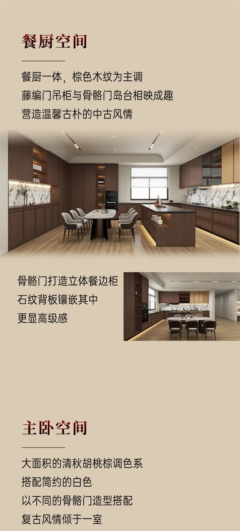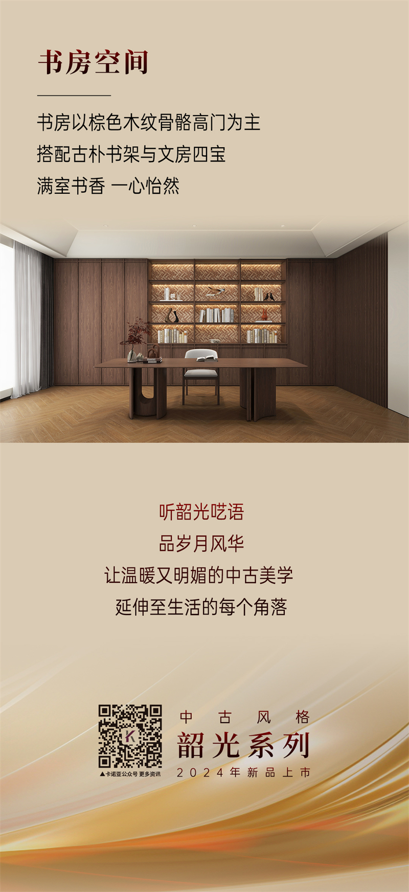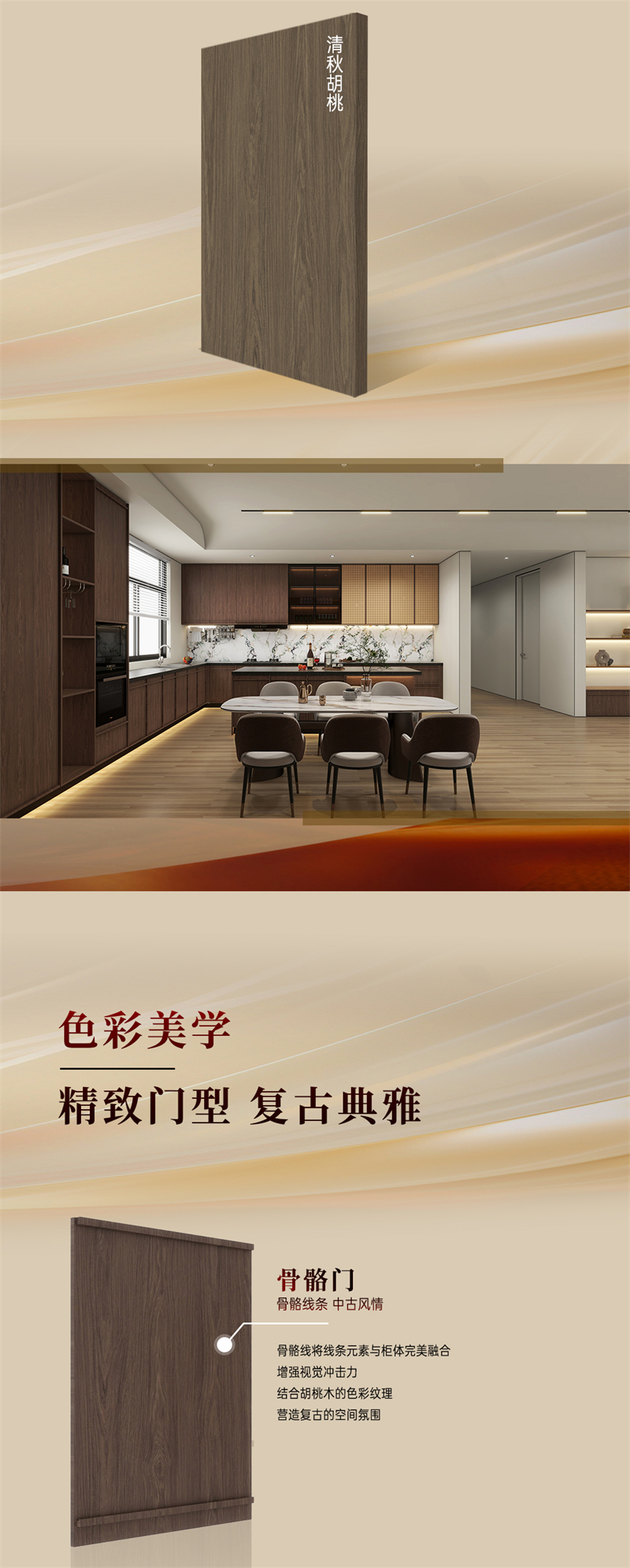 2024年新品系列,韶光 |中古風棕色胡桃木紋為主色調(diào),搭配白色暗紋,細膩的藤編門與硬朗的骨骼門讓人聯(lián)想到古老的家具,充滿了歲月的痕跡。木紋的邊框+細密的藤編,自帶復古朦朧美感;拼樞門和藤門結(jié)合運用,使整個空間透氣感強,并擁有獨特舒適的慵懶氛圍。