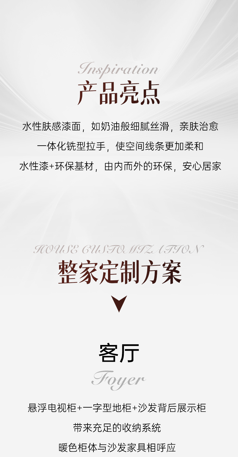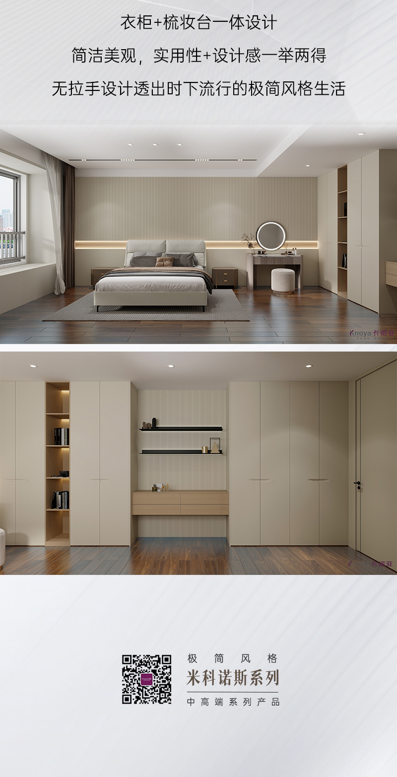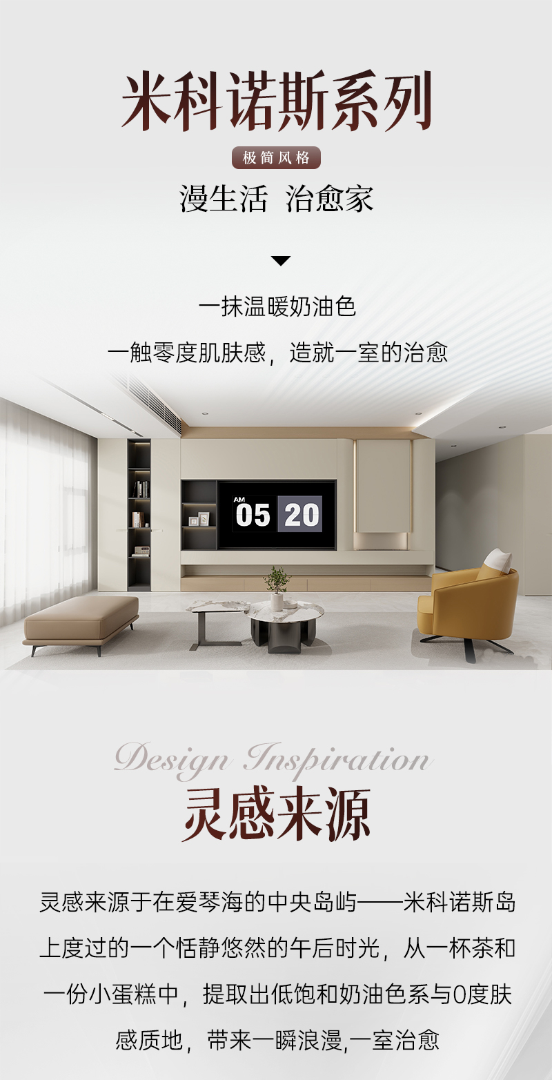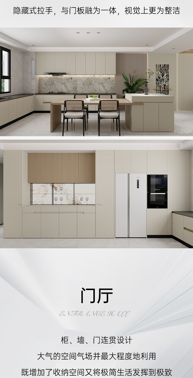 米科諾斯系列 | 極簡風(fēng)格水性膚感漆面,如奶油般細(xì)膩絲滑,親膚治愈;一體化銑型拉手,使空間線條更加柔和,溫馨氛圍更濃;水性漆+環(huán)?;?,由內(nèi)而外的環(huán)保,安心居家。