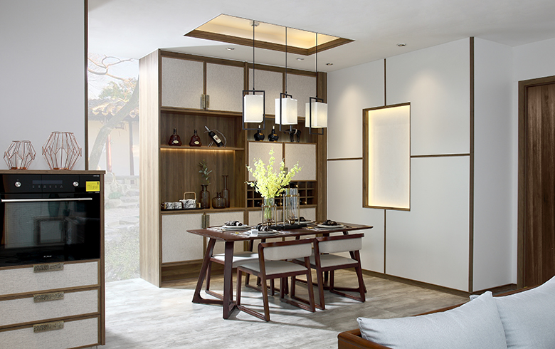 君子遠離庖廚,煙雨江南廚房讓人愛上下廚。新中式廚房更注重實用性,L型廚柜設(shè)計科學合理的操作動線,遵從洗、切、炒的料理順序,讓美味佳肴在行云流水的烹飪中輕松搞定。
