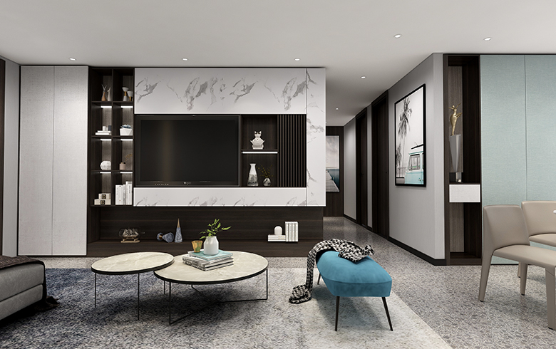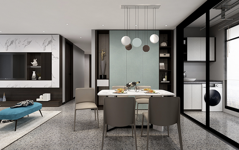 該方案為極簡系列,現(xiàn)代風(fēng)格。本方案設(shè)計(jì)靈感來源于鴉頭棕雀的鳥巢,整體空間以木紋色為主,采用淡藍(lán)色為輔助色作為點(diǎn)綴??臻g戶型面積約為103m2,大致分為客餐廳、陽臺、廚房、衛(wèi)生間、主臥、次臥以及書房。動靜分區(qū),互不干擾。整個(gè)客餐廳色調(diào)有淺灰、黑色兩個(gè)色調(diào),視覺上顯得統(tǒng)一。廚房設(shè)計(jì)為L型。主臥床頭背景設(shè)計(jì)兩層,第一層與柜體顏色相呼應(yīng);第二層與柜門顏色呼應(yīng)。顏色統(tǒng)一,層次與立體感強(qiáng);通過橙色調(diào)進(jìn)行點(diǎn)綴,增加空間的靈動性。次臥的主色調(diào)是淺灰色,是深受現(xiàn)代主流的配色,給人一種親近的感覺。書房背景以淺色與護(hù)墻的顏色統(tǒng)一,但橙色最為點(diǎn)綴,不會顯得單調(diào)沉悶。