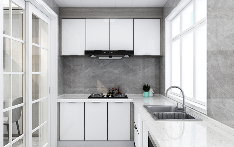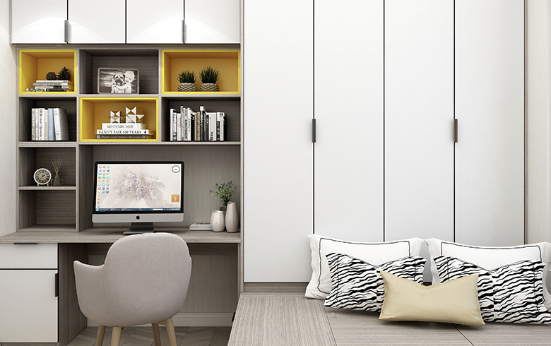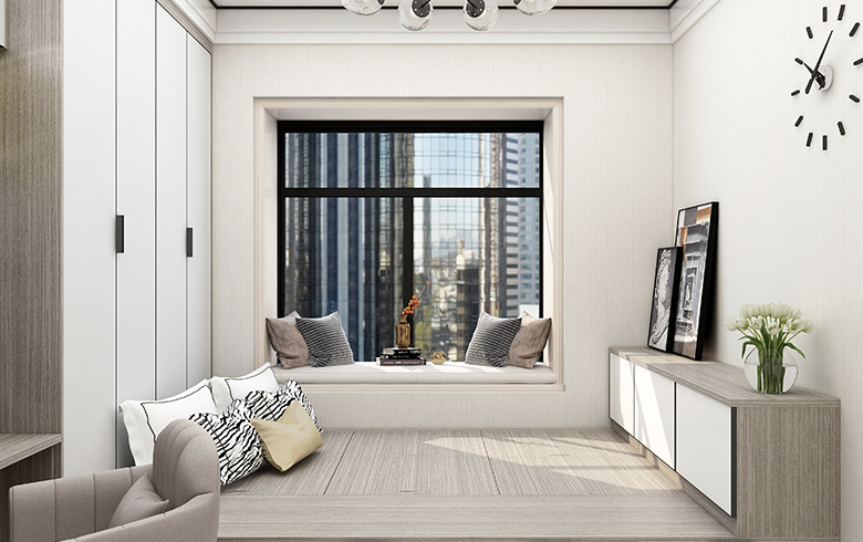 從玄關到客廳,再至餐廳,廚房,臥房,書房,空間主角都是灰色,白色,溫馨的銀絲木與珍珠白的柜體突顯優(yōu)雅又帶來溫馨的家氛圍。