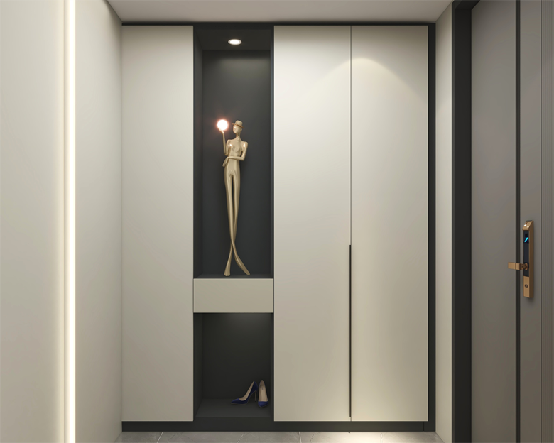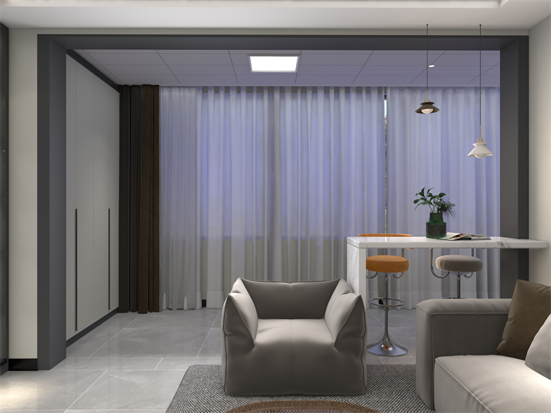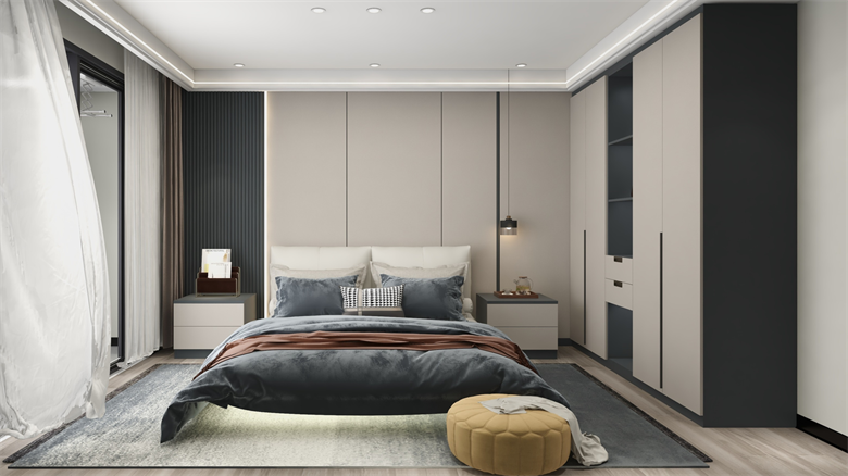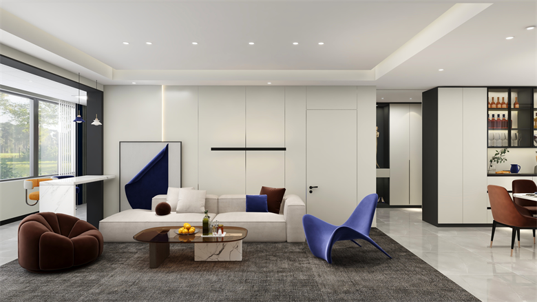 整體風格為現(xiàn)代簡約風。整個空間做到了柜墻門一體化,色系統(tǒng)一協(xié)調。柜體柜門運用了澀黑,澀感白兩個顏色。軟裝上冷暖色調隨意搭配。材料上整個采用了糠醛板,環(huán)保、堅固還防潮。家里老人小孩都不用擔心。收納區(qū)域也是足夠多,做到了美觀且實用。設計理念:以人為本 ,設計有歸屬感的家,做有溫度的設計師。整家之美|第五屆卡諾亞杯全國家居空間設計大賽