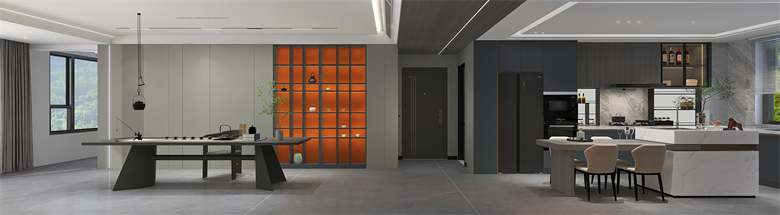 本案以現(xiàn)代極簡風(fēng),采用黑白灰的色彩基調(diào),三色過渡簡單自然,彼此映襯,讓人置身于一種靜謐的家居氛圍??臻g中的橙色點(diǎn)綴,仿佛一術(shù)光,照亮了整個黑暗,生活需要光的指引,只要我們不斷追逐,光永遠(yuǎn)在我們前方!設(shè)計理念:用有限的空間,做無限的設(shè)計,彰顯個性之家。整家之美|第五屆卡諾亞杯全國家居空間設(shè)計大賽