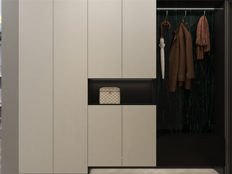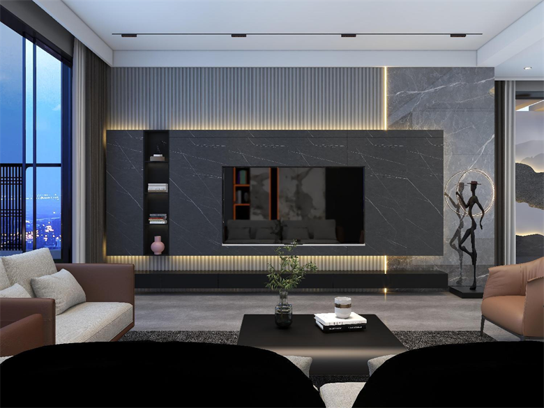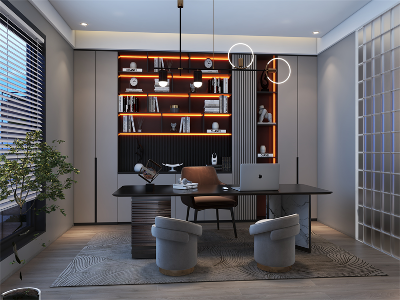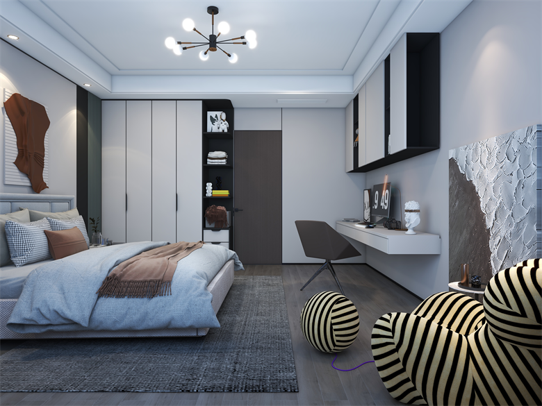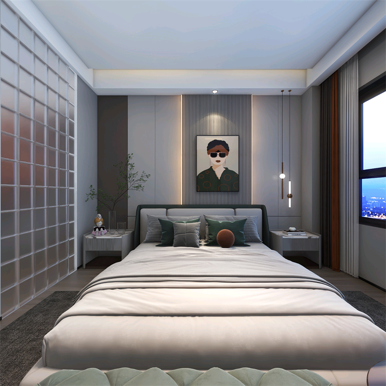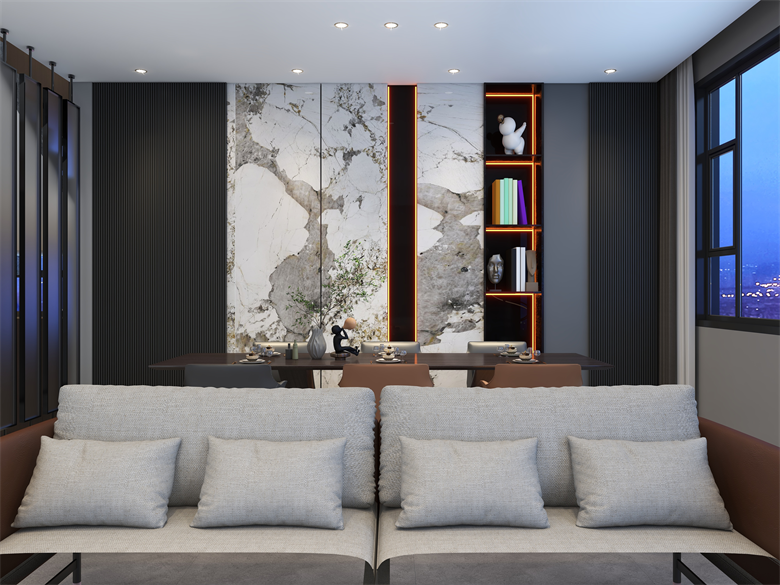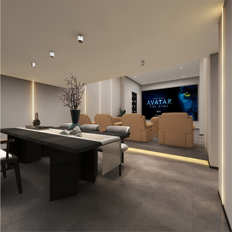 此案,為現(xiàn)代極簡風(fēng)格,整體以簡單大氣,穩(wěn)重不失溫馨,設(shè)計上嚴(yán)格遵循人體工程學(xué)原則,在造型、材質(zhì)等方面要符合人的生理和心理需求。此案設(shè)計的色彩比較單一,顏色多選用單色,或少數(shù)幾種顏色搭配。避免使用多種顏色混搭以及避免使用強烈對比的顏色,復(fù)雜華麗的顏色,反對繁瑣的花紋色彩的搭配。在色彩上追求平和、舒緩、內(nèi)斂之感極簡主義的設(shè)計多采用直線、方形,或規(guī)則簡單的幾何形狀,減去一切不必要的元素與細(xì)節(jié),比例精確,整體呈現(xiàn)簡潔明快,干凈利落感覺。此案中大部分空間運用了無主燈,因為無主燈設(shè)計講究的是“見光不見燈,分區(qū)域散點照明”。而且的無主燈設(shè)計能夠讓空間更具層次感,顯得非常的高級,若隱若現(xiàn),層次分明。