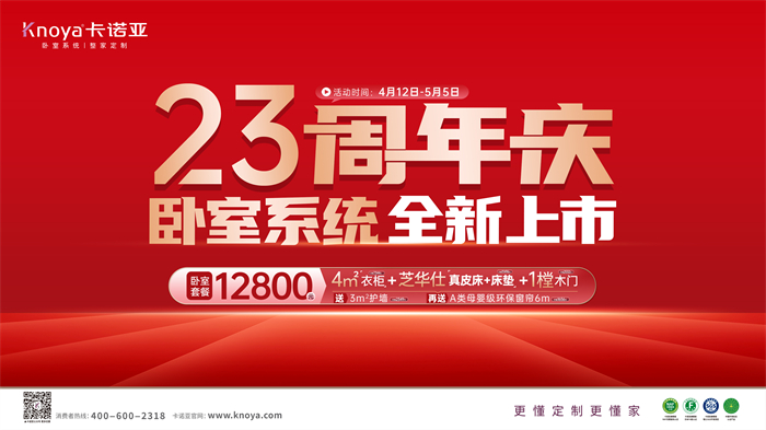 伴隨五一裝修黃金周臨近,恰逢卡諾亞23周年慶臥室系統(tǒng)盛大發(fā)布之際,為滿足消費者的品質(zhì)消費需求,卡諾亞五一盛惠風暴于4月12日到5月5日強勢登陸全國各地專賣店,包含12800元臻選臥室套餐、11800元享在臥室套餐、10800元學在臥室套餐、28800元康醛整家套餐、8999元全屋配套家品套餐、舊櫥煥新套餐等,下定即享4大超值福利,帶來高質(zhì)價比的促銷盛宴,為不同消費群輕松定制不一樣的專屬生活方式。