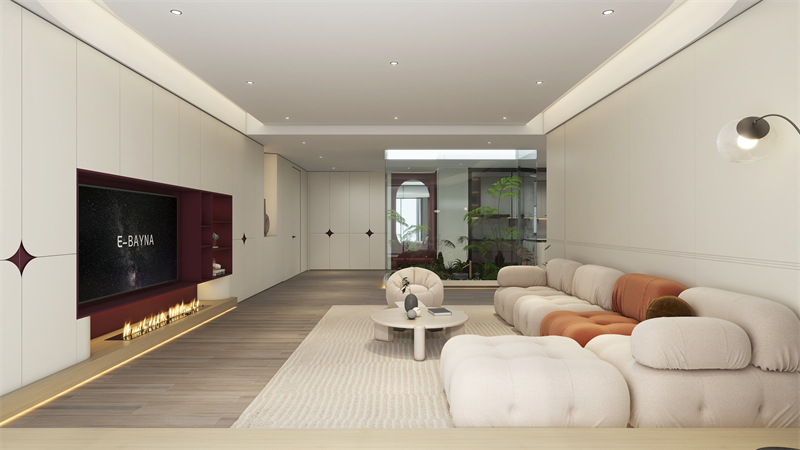 懸空電視柜撞色設(shè)計(jì),搭配弧狀拼接護(hù)墻板,保留奶油風(fēng)溫馨基調(diào)又增添幾分和諧且富有層次感的視覺(jué)效果,讓空間輕盈靈動(dòng)。