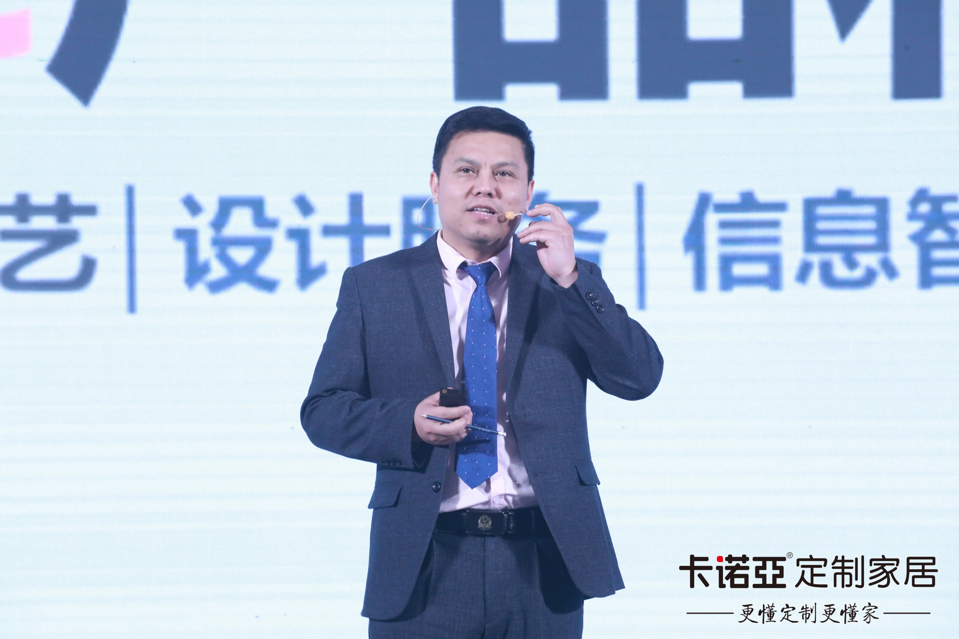 圖:卡諾亞定制家居副總裁兼生產(chǎn)總經(jīng)理葉喜都先生做“智慧制造,護(hù)航終端”主題報(bào)告