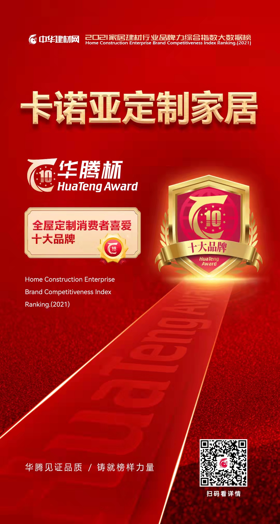 9月1日,由中華建材網(wǎng)主辦的“華騰杯·2021家居建材行業(yè)品牌力綜合指數(shù)大數(shù)據(jù)榜”重磅揭曉,卡諾亞定制家居憑借品牌綜合實力,榮獲“全屋定制消費(fèi)者喜愛十大品牌”,彰顯公司在產(chǎn)品、設(shè)計及服務(wù)層面滿足新消費(fèi)升級需求,助力中國消費(fèi)者對高品質(zhì)家居和幸福生活的追求。