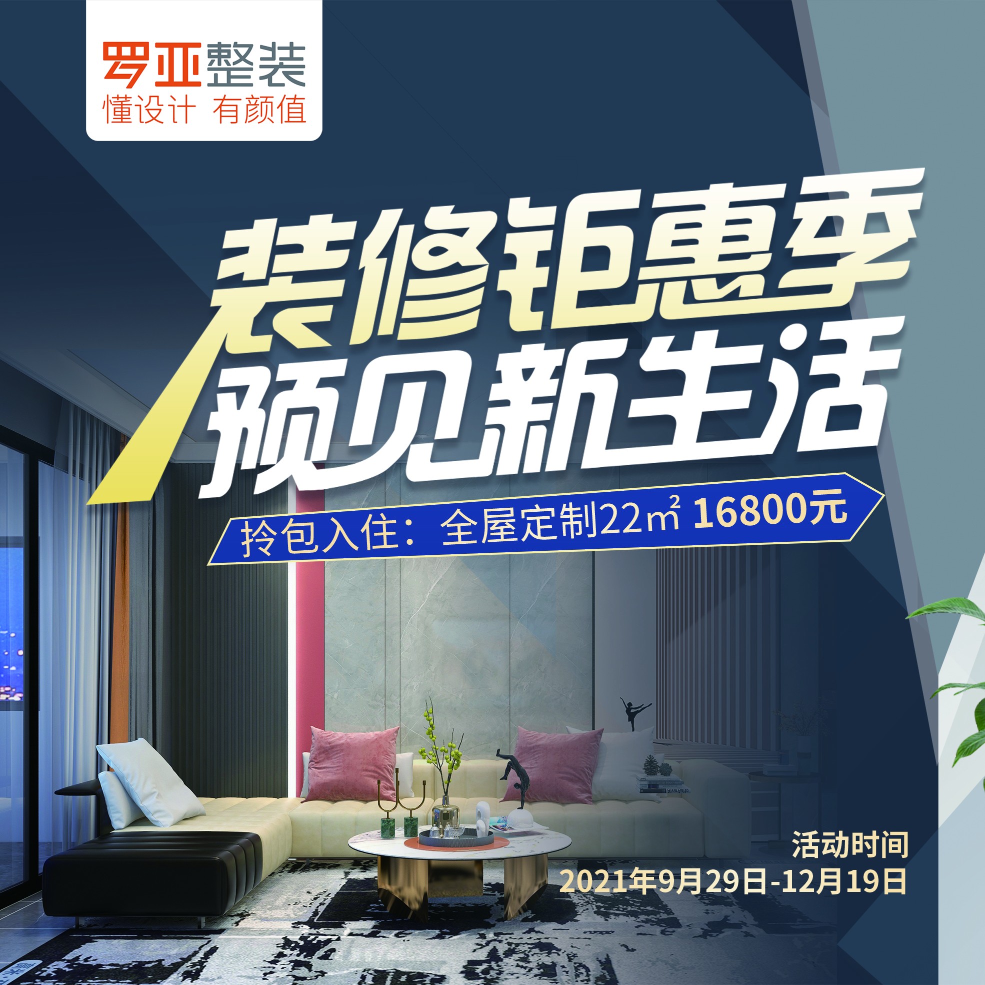 對于想“秋冬搞裝修,新年住新房”的業(yè)主來說,四季度無疑是搶優(yōu)惠、省大錢的好時機。為此,卡諾亞公司旗下的羅亞整裝,在黃金裝修季的9月29日-12月19日,實在實惠推出“裝修鉅惠季,預(yù)見新生活”全國普惠風(fēng)暴活動,全屋定制僅需¥16800、拎包套餐只要¥31800、廚柜套餐¥4680、護墻板套餐¥4980、輕奢主義系列新品搶鮮價¥1199/㎡等,5個套餐任你選,軟硬裝一站購齊,心動之家,安心居家,輕松圓夢煥新家。